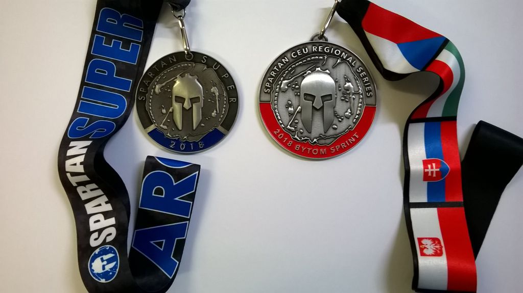 Keď som dobehol do cieľa nebol som nadšený touto traťou. Po Sprinte popoludní som mal lepší pocit asi preto, že prekážky boli hustejšie za sebou. Až neskôr som si to v hlave tak premietal a nebolo to až také marné. Prekážky boli rovnomerne rozmiestnené a striedali sa rôznorode. Zdalo sa mi veľa stien ale aj s OUT ich bolo 6. Najviac však ďakujem organizátorom za novú prekážku - taký rebrík so 6 priečkami ale už na najnižšiu treba vyskočiť a oblúkom prehnutý negatívne ako invert wall. Ďalej multirig sťažili kombináciou šikmá rúra, dve laná, kruh, laná. Veru veľa sa padalo. Prekvapila ma lezecká stena, novovyrobená (možno iba pre preteky v Poľsku) s malými, tenkými , štvorcovými úchytmi až natoľko, že som spadol. Pri Sprinte som tiež robil 30 lebo balík slamy sa v poslednej chvíli uhol nabok asi o 10 cm. Bol bez fólie teda iba slama takže sa výborne zapichovali oštepy. Až tak, že som ho nevedel vytiahnuť po Patrikovi Waldhansovi, ktorý ho tak namydlil, že minimálne jednou štvrtinou bol vo vnútri balíka. Olympus bol tiež "poľský" okrem reťazí mal aj vyfrézované okrúhle diery takže bol zhovievavší. Ako dobrý vtip sa mi javí pripevnenie vybratých krúžkov z týchto dier, preglejka má myslím 18 mm. To by som musel byť skalolezec nie Spartan aby som sa na tom udržal. Mohli tiež pritvrdiť keby dali viac výbehov na haldy sute, ktorá uchádzala spod nôh, no bol iba jeden. Zbehy s takýmto povrchom boli 3 alebo 4. Pri Super sme sa raz brodili naprieč potokom a pri Sprinte to bolo 2x. Pred cieľom to bolo tiež iné. Dlhá rovinka kde bežci mohli ešte niekoho prešprintovať a potom brzda - hore krátkym svahom do cieľa bez ohňa. No a v cieli tričko so sympatického materiálu ale hlavne medaila, ktorá sa mi veľmi páči a ešte viac zo Sprintu, ktorý bol aj prvým z regonálnej série a bežal som v Age group. Aj keď moje umiestnenia v prvej tretine cieľovej listiny nič-moc, odchádzal som vcelku spokojný.